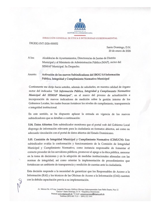 Circular Activación Subindicadores Nueva Guía SISMAP Municipal